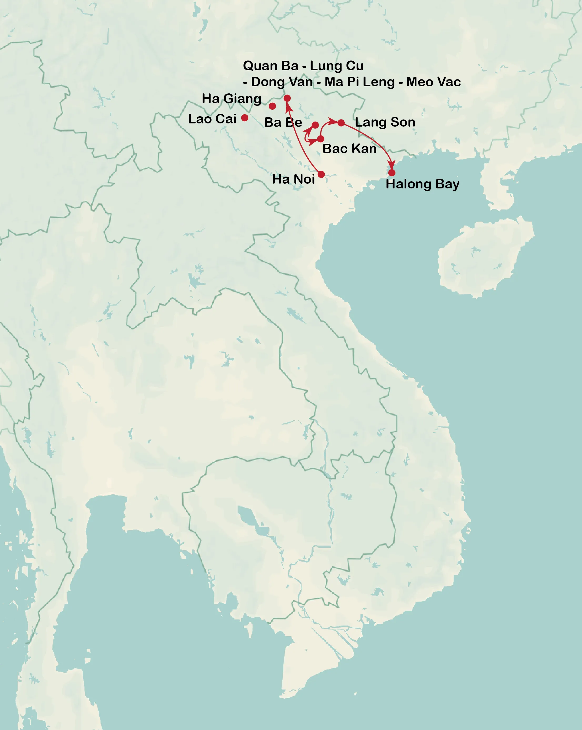 Hanoi - Ha Giang - Quan Ba - Lung Cu - Dong Van - Ma Pi Leng - Meo Vac - Bac Kan - Ba Be - Bac Can - Cao Bang - Lang Son - Lang Son - Halong Bay