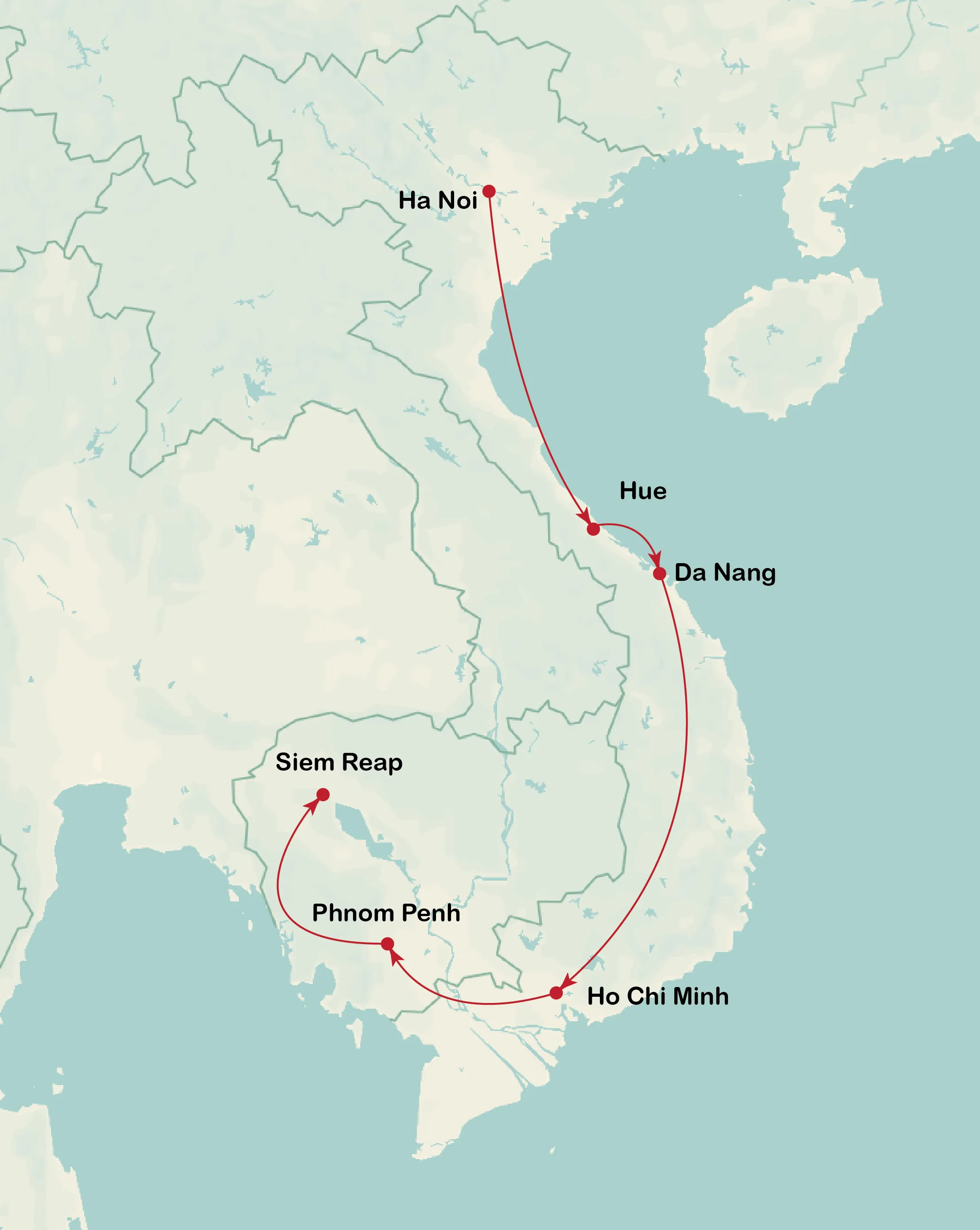 Hanoi – Hue, Danang – Saigon/ HCMC – Phnom Penh – Siem Reap