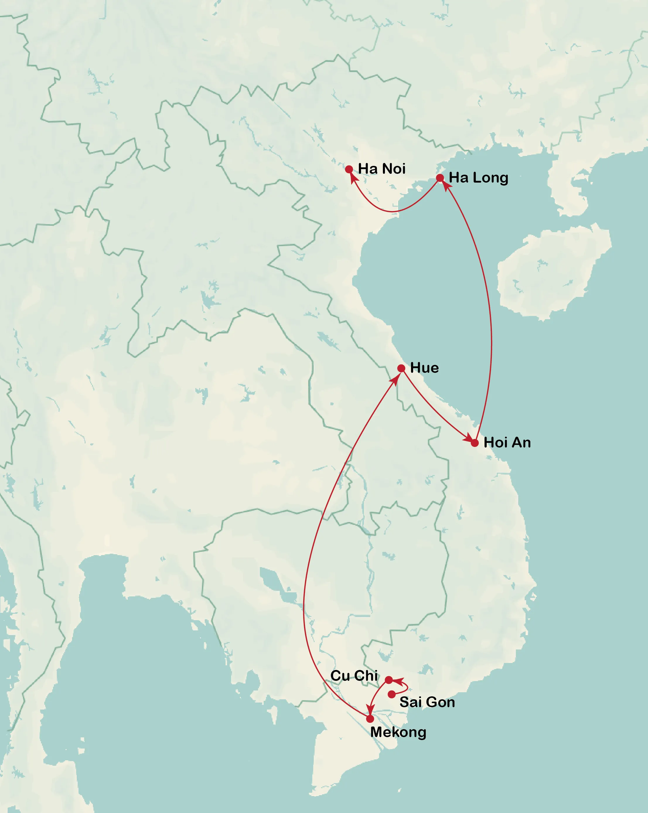 Sai Gon - Cu Chi - Mekong - Hue - Hoi An - Ha Long Bay - Ha Noi